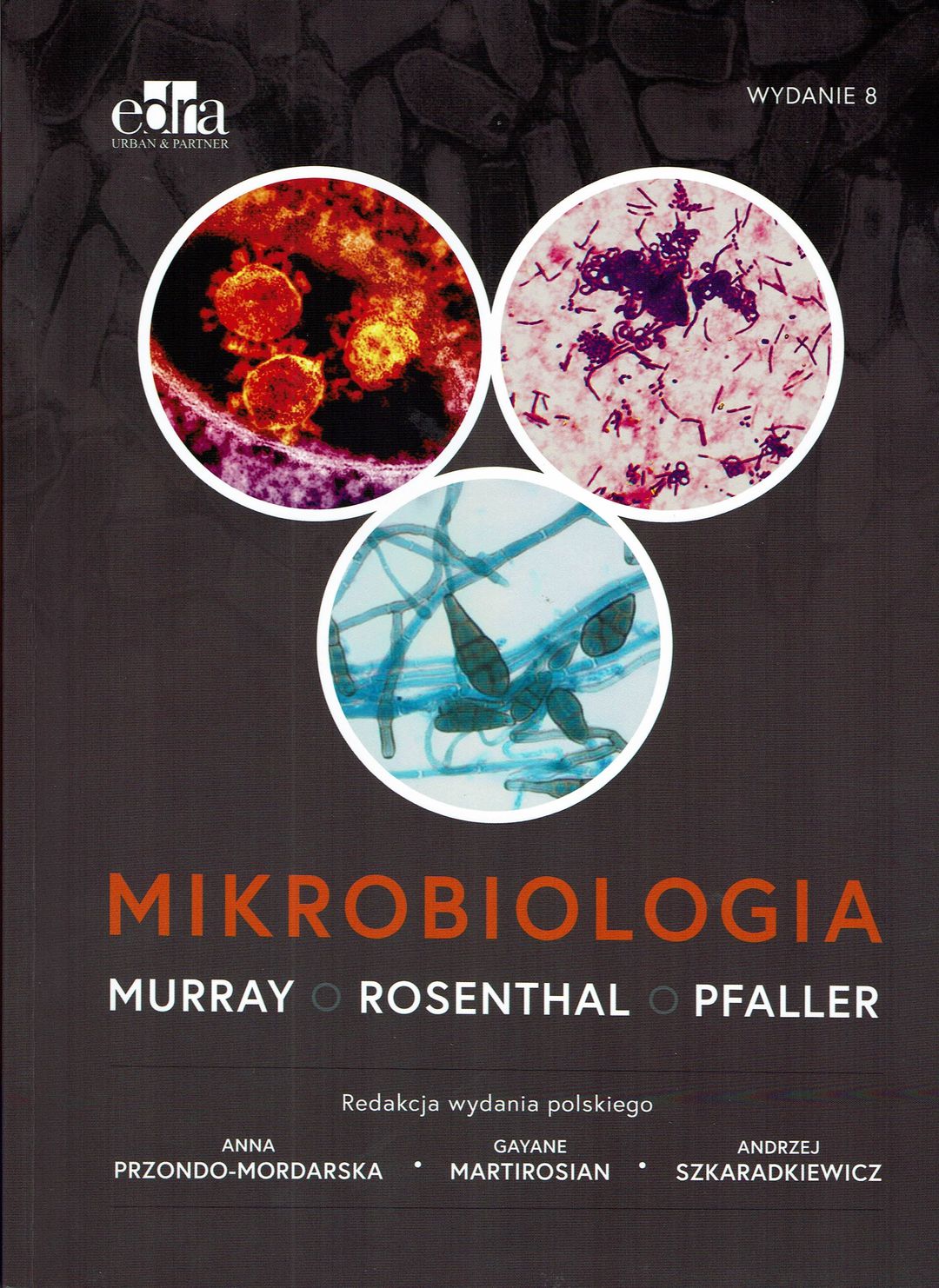 Mikrobiologia / Patrick R. Murray, Ken S. Rosenthal, Michael A. Pfaller. - Wydanie II polskie, dodruk 2022 / redakcja naukowa 2. wydania polskiego Anna Przondo-Mordarska, Gayane Martirosian, Andrzej Szkaradkiewicz ; tłumaczenie z języka angielskiego 2. wydania Stefania Giedrys-Kalemba, Adam Junka, Tomasz Karpiński, Piotr Kłuciński, Gayane Martirosian. - Wrocław : Edra Urban & Partner, 2022. - X, 914 stron : ilustracje, fotografie, wykresy ; 27 cm.