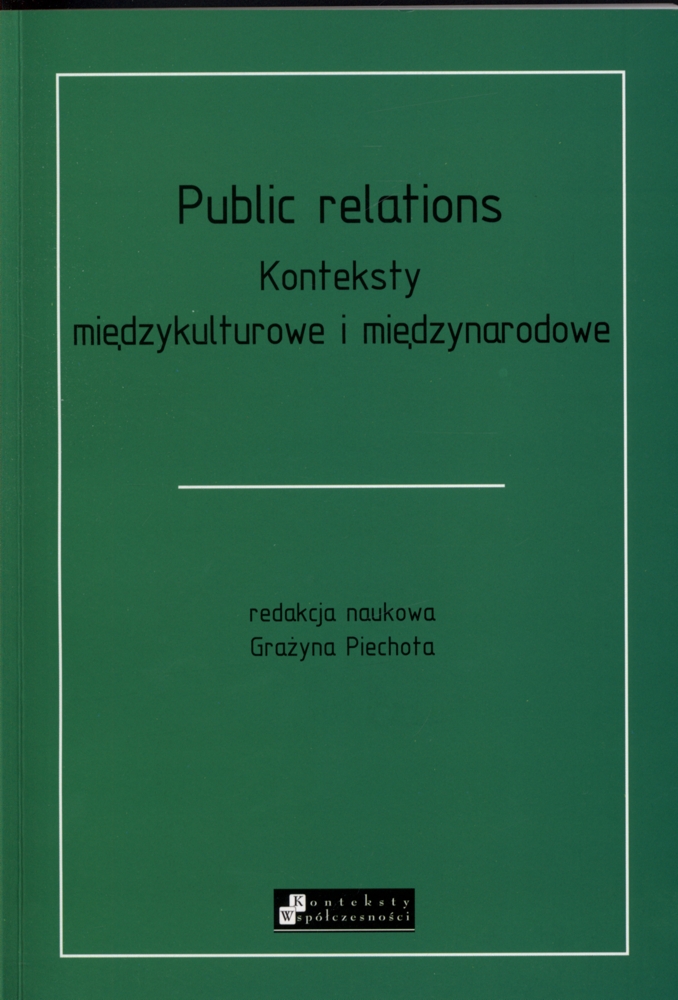 1. Grażyna Piechota: Komunikacja międzykulturowa i lokalizm - (r)ewolucja w polskim public relations?; 2. Marta Ryniejska-Kiełdanowicz: Kulturowe aspekty działań public relations; 3. Justyna Całus-Siemieniuk: Wybrane formy komunikowania społecznego. Analiza porównawcza kampanii społecznej przed referendum konsultatywnym "Wiedeń chce to wiedzieć 2010" w Wiedniu i konsultacji społecznych w sprawie budowy ekospalarni w Krakowie; 4. Monika Kaczmarek-Śliwińska: Social Media w Polsce i zagranicą. Różnice w korzystaniu dla budowania wizerunku i innych działań PR; 5. Dagmara Zandman: Projekt "Strój Unii Europejskiej" jako element kampanii wizerunkowej Polski w czasie prezydencji w Radzie UE w 2011 r.; 6. Katarzyna Rup: Działalność społecznie odpowiedzialna na przykładzie działalności firmy Tesco PLC na rynkach europejskich i azjatyckich; 7. Małgorzata Pieprzyca, Jarosław Pieprzyca: Rola i znaczenie działań public relations w tworzeniu przedsiębiorstwa w Anglii; 8. Dariusz Kryszk: Obsługa prasowa spotkań międzynarodowych. [AW]